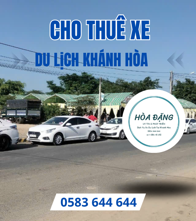 Hòa Đặng là đơn vị chuyên cung cấp dịch vụ cho thuê xe du lịch chất lượng cao tại Khánh Hòa, phục vụ khách hàng cá nhân, doanh nghiệp và các công ty lữ hành. Với đội xe đa dạng từ 4 chỗ, 7 chỗ, 16 chỗ, 29 chỗ đến 45 chỗ, chúng tôi đáp ứng mọi nhu cầu di chuyển: tham quan Nha Trang, đón tiễn sân bay Cam Ranh, tour du lịch tỉnh, công tác hay sự kiện cưới hỏi.